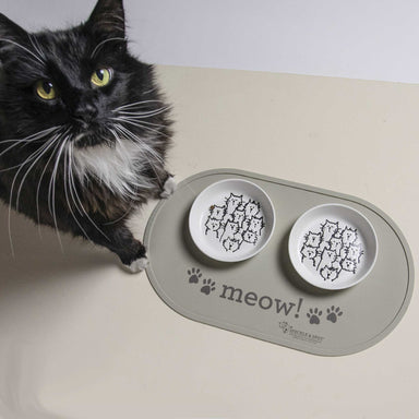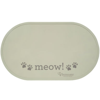 The Large Grey Meow Oval Silicone Placemat has a raised edge to trap spills, is 100% food-grade silicone, easy to clean and can be used for kids, p...