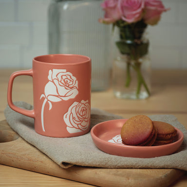 The Rose Cuppa Color Mug makes a soothing addition to your morning cup-a-joe and has lovely etched and hand-painted roses surrounding the matte fin...