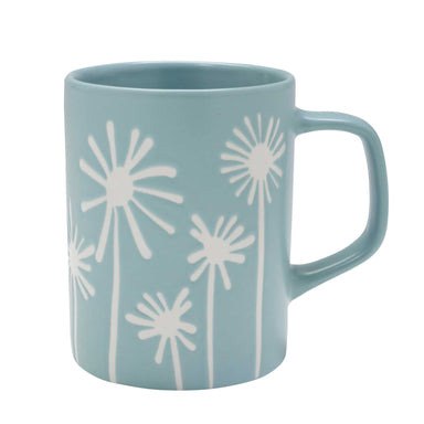 The slate blue Dandelion Cuppa Color Mug makes a soothing addition to your morning cup-a-joe and has lovely etched and hand-painted dandelions surr...