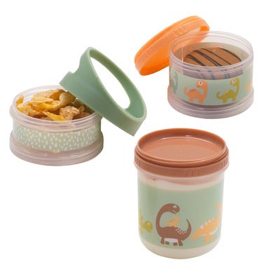 The Baby Dinosaur Twist & Snack Stacker features playful dinosaurs frolicking. Twist & Snack Stacker is a stacking container for snacks, sm...